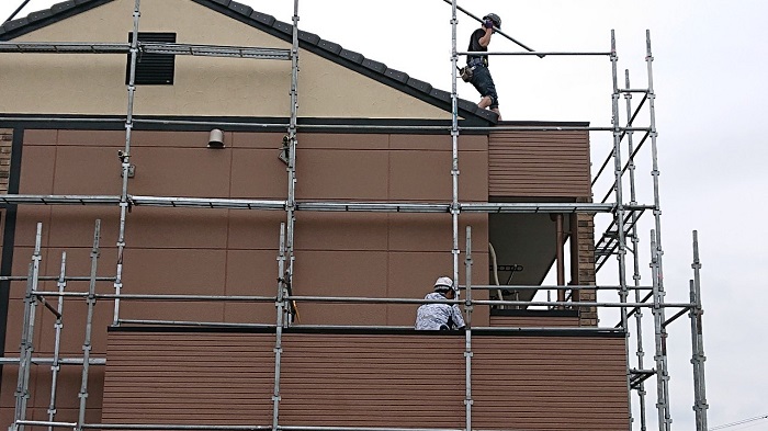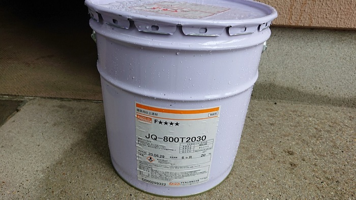 本日は安城市にてアパート共用部の塗装工事、岡崎市にて仮設足場の撤去工事を行いました。1つ目の写真は外壁の塗り替えに使用する材料でKFケミカルの2液弱溶剤4フッ化フッ素樹脂塗料、セミフロンマイルドⅡです。セミフロンマイルドⅡは耐候性に極めて優れた4フッ化フッ素樹脂を使用した高耐候性の塗料です。2つ目の写真は外壁のコテ仕上部の塗り替えに使用する塗料で、アイカ工業のジョリパッドフレッシュです。ジョリパットの風合いを残したまま、ローラーで簡単に施工できる改修用塗材です。