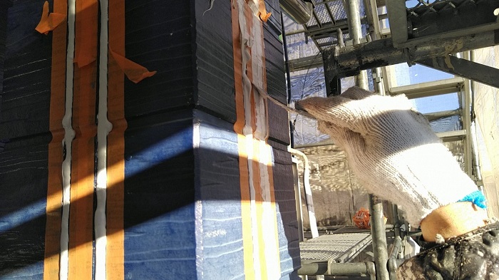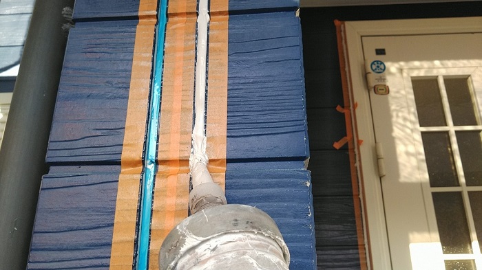 こんにちは、本日は岡崎市にてシーリング工事を行いました。外壁材が窯業系サイディングの場合は、大きく分けてパネル間目地部と窓枠回り目地部のシーリング工事を行います。近年、低層住宅などの外壁にサイディングが多く使用されておりますが、窯業系サイディングの場合には、乾湿の繰り返し及び部材の硬化収縮によるムーブメントなどを考慮し、適正な材料と適正な施工方法で工事を行います。写真は、シーリング施工時のものです。材料は、オート化学の長期耐久型ハイクォリティーシーリング材、オートンイクシードを使用致しました。