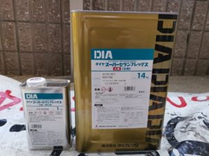 こんにちは、本日も昨日に引き続き豊川市と豊田市にて住宅の外壁塗装工事を行いました。写真は外壁サイディングの下塗り及び中塗り塗装作業時のものです。下塗材料はダイフレックスの無機透湿微弾性フィラー、ダイヤセラ・トーシツプラスを使用、中塗上塗材料はダイフレックスの超耐候・超低汚染型変性無機塗料、スーパーセランフレックスを使用致しました。
