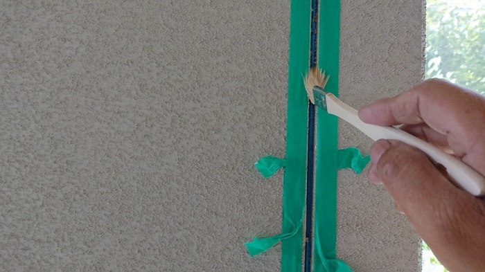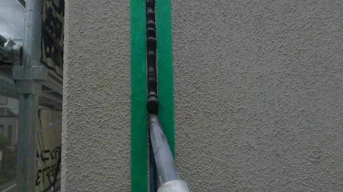 こんにちは、本日は安城市にて仮設足場の組み立て工事と高圧洗浄工事、岡崎市にて住宅塗装工事を2件、豊田市にてシーリング工事を行いました。写真は、窯業系サイディングのパネル間目地や建具回り目地のシーリング作業時のものです。材料は、オート化学の長期耐型ハイクォリティシーリング材、オートンイクシードを使用致しました。シーリング材は、建設物の水密性・気密性を目的とする防水材料です。その機能は長期的に維持されなければなりません。同時に建設物の意匠上の観点から美観を損なう不都合を生じてはなりません。オートンイクシードは水密性・気密性の保持、目地ムーブメントへの追従、耐久性に優れた材料です。お家の塗り替え前にまず、シーリング工事を行い、防水処理をしっかり行います。
