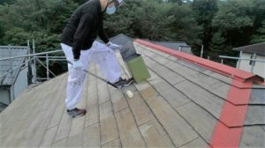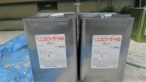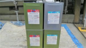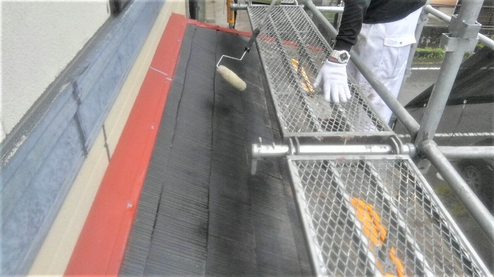 こんにちは、本日は安城市にてアパートの塗り替え工事を2件、豊田市にて屋根の塗り替え工事を行いました。写真はスレート屋根の下塗り作業時のものになります。下塗りの材料は、日本特殊塗料の2液型弱溶剤エポキシ樹脂塗料、エポラマイルドプライマーSを使用、2回目の下塗りの材料は、スズカファインの新生瓦・セメント瓦用 カチオン系合成樹脂エマルション下地調整塗材、ベスコロフィラーHGを使用致しました。上塗り作業に入る前に、プライマーとフィラーを用いて下塗り塗装を2回行い、下地をしっかり作ります。